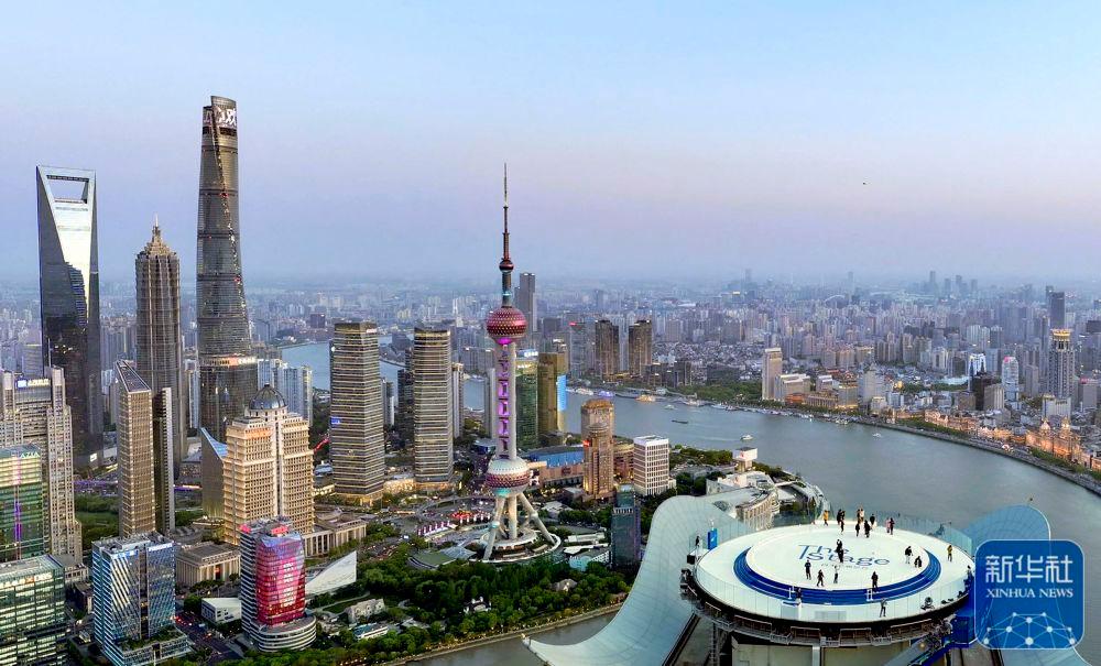 2025年4月14日在上海白玉蘭觀景臺(tái)拍攝的城市天際線(無(wú)人機(jī)照片)。