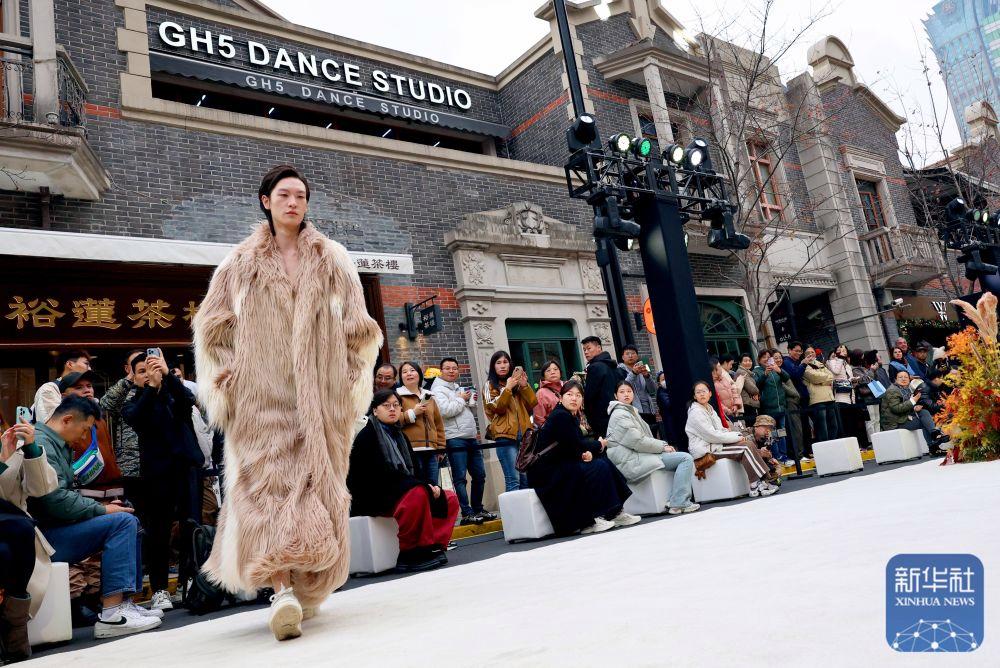 2024年12月7日,模特在“?!づ蓮垐@時(shí)尚文化周”中國(guó)青年設(shè)計(jì)師時(shí)裝秀上展示設(shè)計(jì)師服裝作品。時(shí)裝秀以張園建筑主色調(diào)與設(shè)計(jì)線條為靈感,百年石庫(kù)門建筑群落為背景,將茂名北路作為T臺(tái)秀場(chǎng),獨(dú)具上海特色。