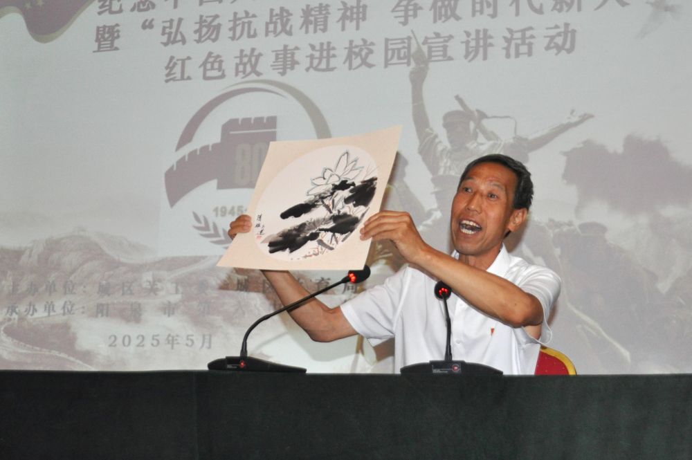 出生在陽泉市正太鐵路破襲戰(zhàn)沿線區(qū)域的姚永田,從小聽抗戰(zhàn)故事長大。他利用課余時間研究家鄉(xiāng)抗戰(zhàn)史、編寫校本教材,并在校園義務宣講紅色故事100余場,努力讓紅色精神在年輕一代心中生根發(fā)芽。這是2025年5月26日,姚永田在陽泉市第六中學為學生們宣講。
