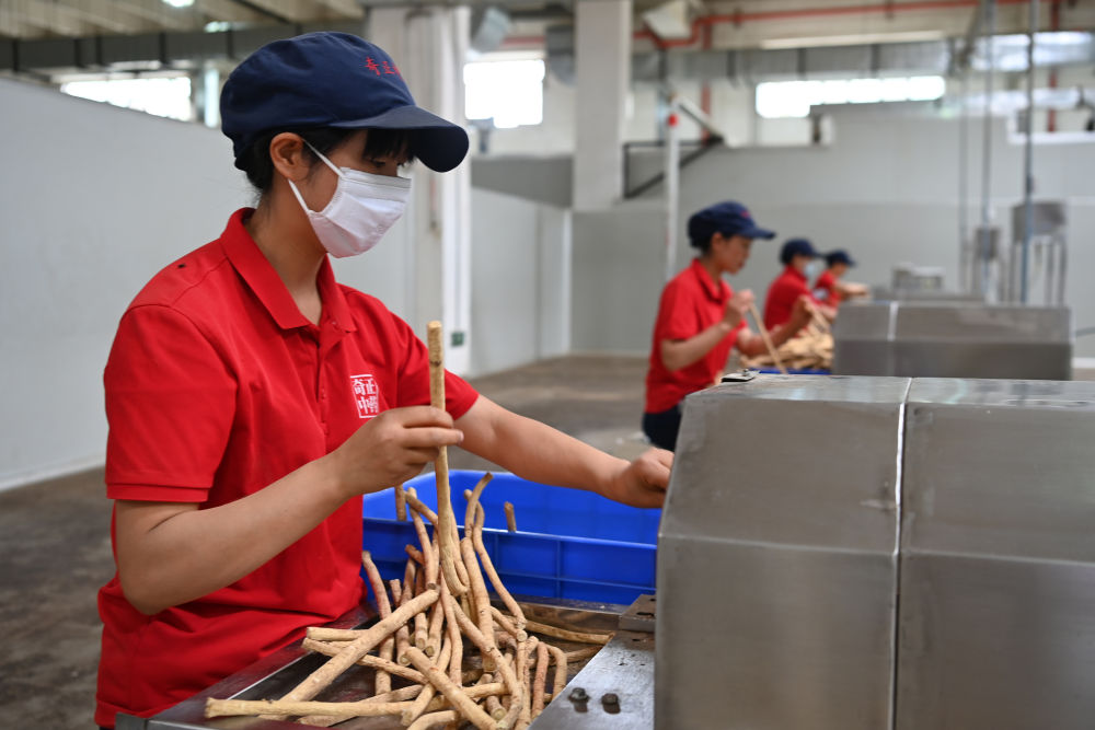 2025年7月8日,工人在江西樟樹市一家中藥企業(yè)的