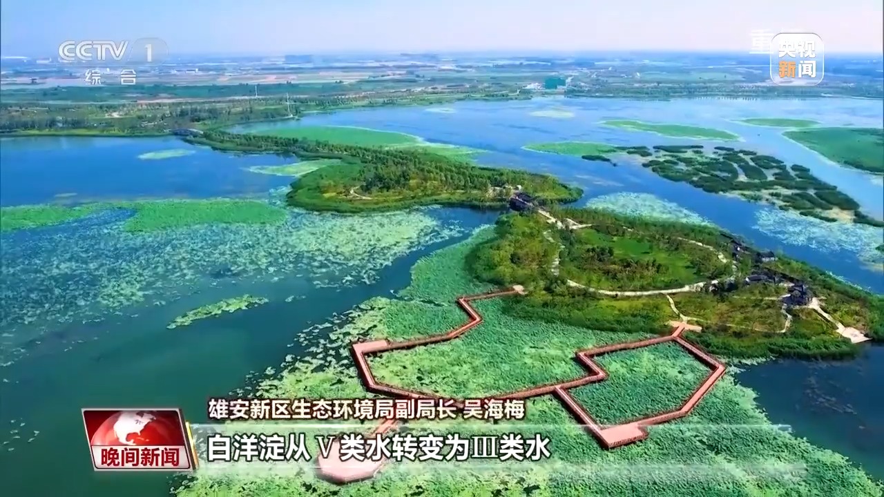 雄安新區(qū)生態(tài)環(huán)境局副局長 吳海梅:白洋淀從Ⅴ類水轉(zhuǎn)變?yōu)棰箢愃?,就像我們?nèi)说纳眢w一樣,從亞健康狀態(tài)正在向健康狀態(tài)轉(zhuǎn)變??船F(xiàn)在的荷花、蘆葦這么茂密,以前我們除了采水樣,都想不到在這里看風景。
