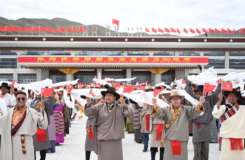 中共中央總書記、國(guó)家主席、中央軍委主席習(xí)近平率中央代表團(tuán)20日中午乘專機(jī)抵達(dá)拉薩,出席西藏自治區(qū)成立60周年慶祝活動(dòng)。習(xí)近平等在機(jī)場(chǎng)和拉薩市區(qū)受到西藏各族群眾的熱烈歡迎。