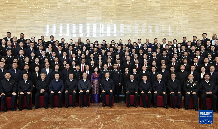 8月20日下午,中共中央總書記、國(guó)家主席、中央軍委主席習(xí)近平在拉薩親切接見西藏自治區(qū)政法干警代表,并同大家合影留念。新華社記者 殷博古 攝