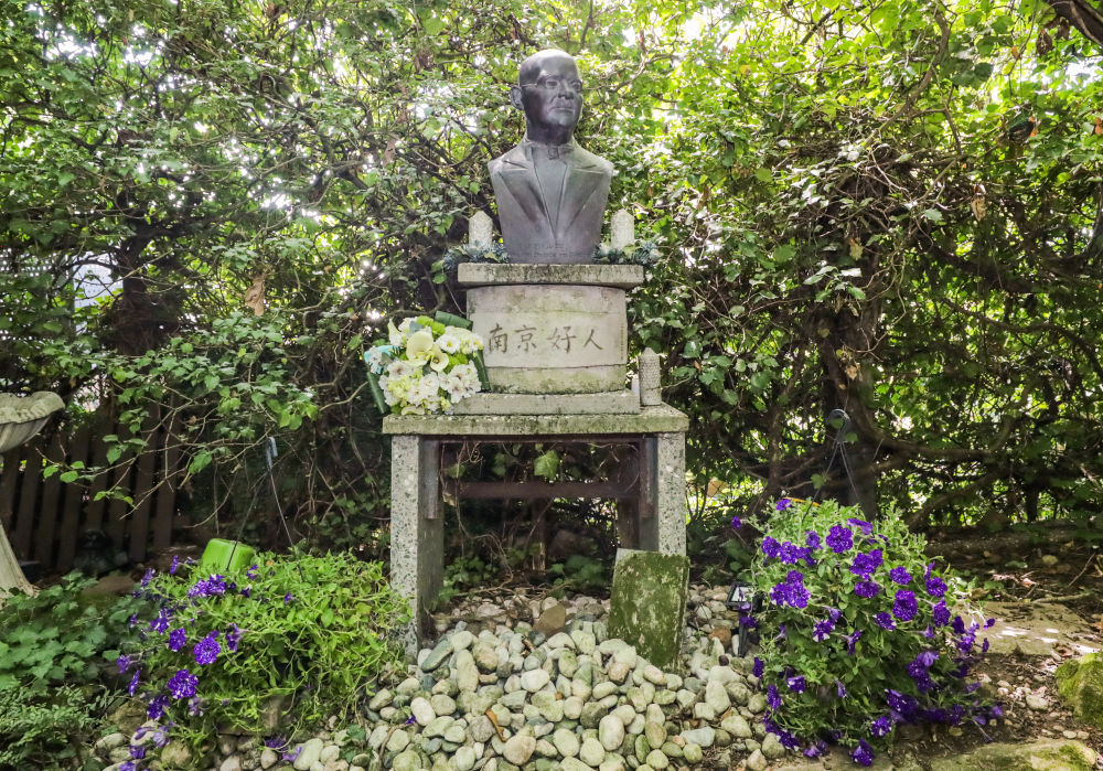 1950年,拉貝逝世,被安葬在柏林西郊。墓碑周?chē)菑哪暇┮圃远鴣?lái)的竹子、梅花和菊花?;颁佊杏昊ㄊ?。墓碑前方矗立著拉貝半身雕像,其下立有紀(jì)念碑,用中德雙語(yǔ)鐫刻著:“感恩——永遠(yuǎn)銘記拉貝先生的國(guó)際人道主義善舉!中國(guó)·南京。”墓前擺放著憑吊者送上的簇簇鮮花。