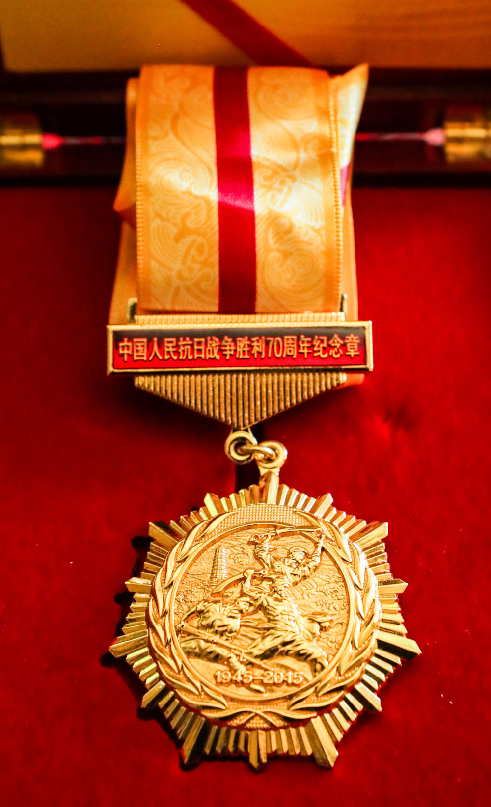 這是8月7日在德國(guó)海德堡約翰·拉貝交流中心拍攝的“中國(guó)人民抗日戰(zhàn)爭(zhēng)勝利70周年”紀(jì)念章。新華社記者 張帆 攝