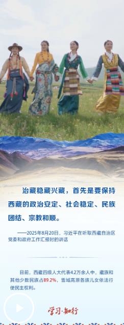 2025年8月20日,習近平總書記率中央代表團乘專機抵達拉薩,出席西藏自治區(qū)成立60周年慶?;顒?。在聽取西藏自治區(qū)黨委和政府工作匯報時,習近平總書記強調(diào),“持續(xù)深入抓好穩(wěn)定、發(fā)展、生態(tài)、強邊四件大事,努力建設(shè)團結(jié)富裕文明和諧美麗的社會主義現(xiàn)代化新西藏”。