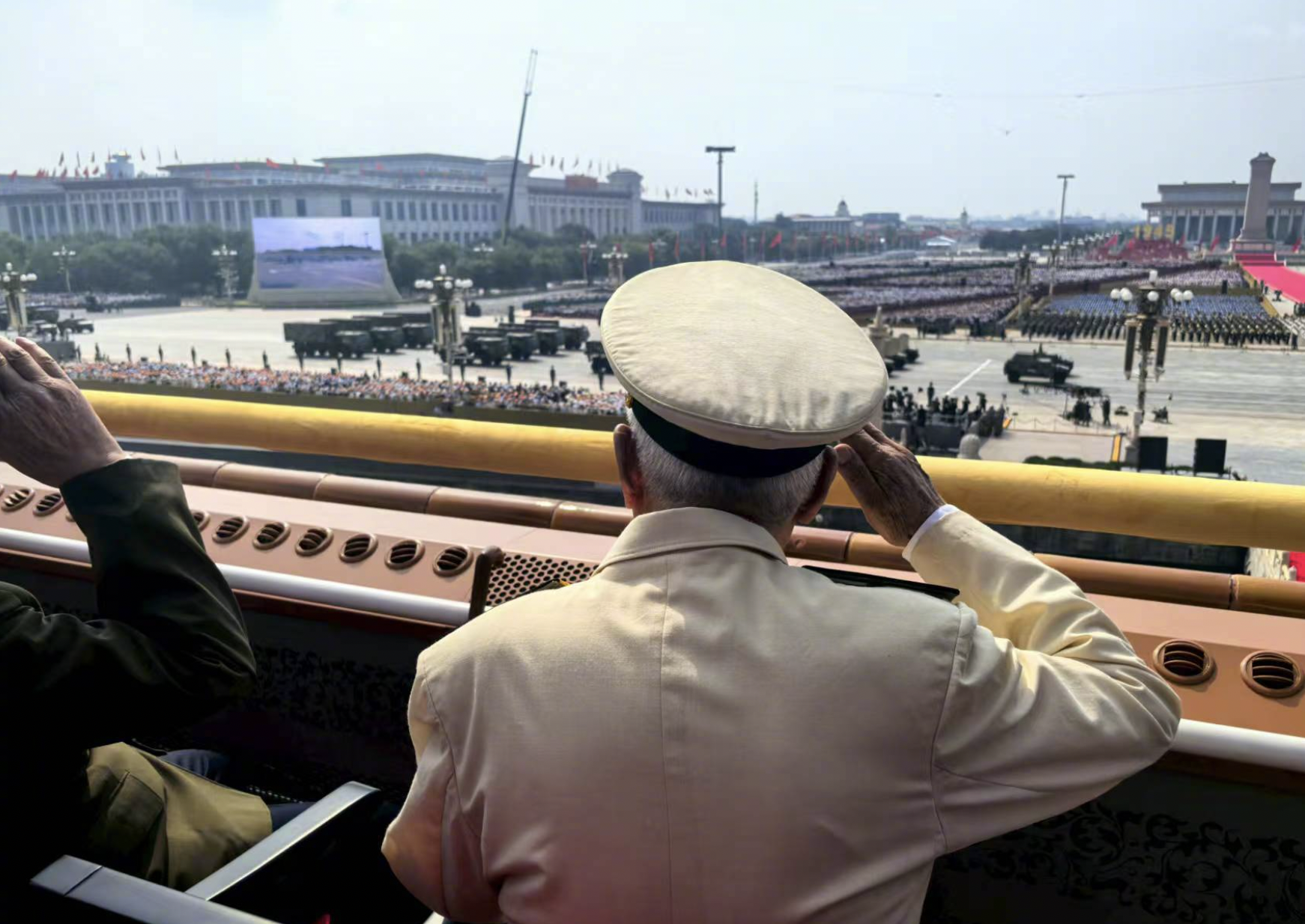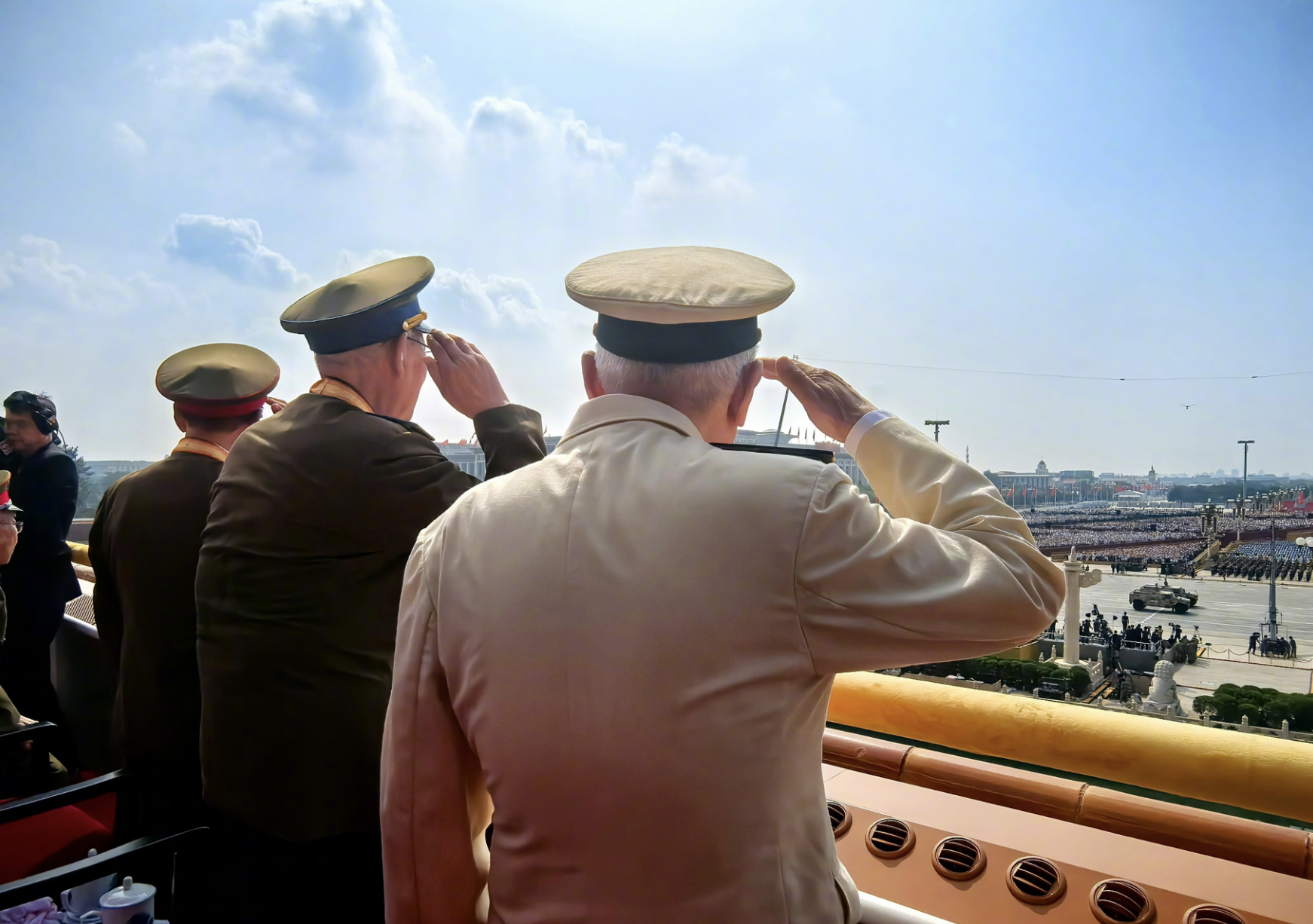 天安門城樓上,參加過(guò)抗戰(zhàn)的老戰(zhàn)士