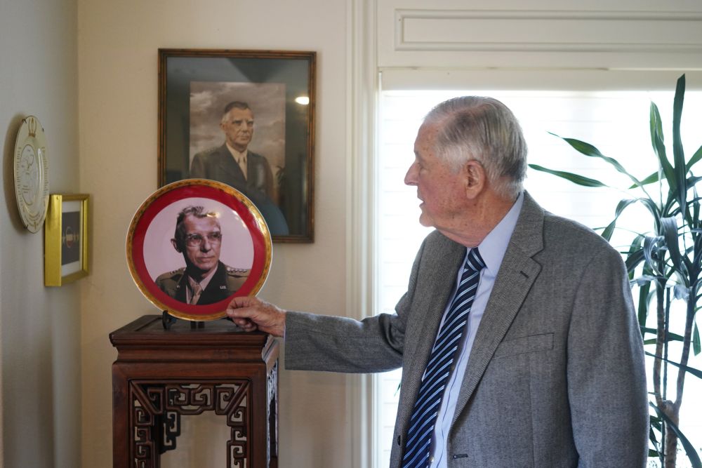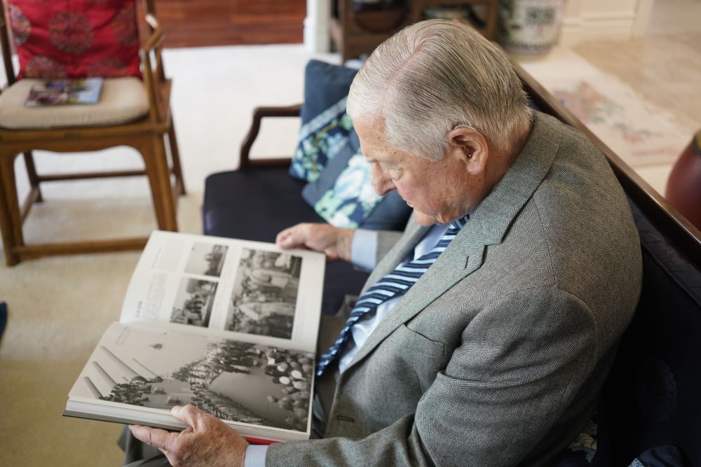 在位于美國(guó)舊金山灣區(qū)的家中,耄耋之年的伊斯特布魯克接受新華社記者專訪時(shí),特意翻出了一張日本在“密蘇里”號(hào)戰(zhàn)列艦上簽署無條件投降書的老照片,用手指著照片中甲板上軍官站立的一側(cè),“史迪威就在這里”。
