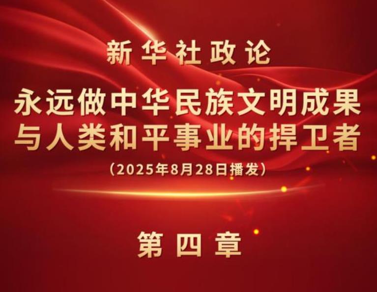 新華社8月28日播發(fā)《新華社政論|永遠(yuǎn)做中華民族文明成果與人類(lèi)和平事業(yè)的捍衛(wèi)者——寫(xiě)在中國(guó)人民抗日戰(zhàn)爭(zhēng)暨世界反法西斯戰(zhàn)爭(zhēng)勝利80周年之際》。我們邀請(qǐng)誦讀嘉賓張晚意演播“第四章”。