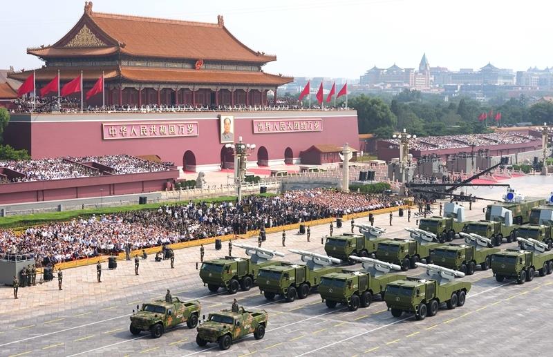 2025年9月3日,紀(jì)念中國人民抗日戰(zhàn)爭暨世界反法西斯戰(zhàn)爭勝利80周年大會在北京隆重舉行。這是艦載防空武器方隊接受檢閱。