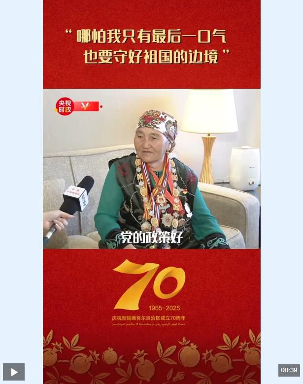 “人民楷模”國(guó)家榮譽(yù)稱號(hào)獲得者布茹瑪汗·毛勒朵表達(dá)了她最想對(duì)總書(shū)記說(shuō)的話:“我從19歲開(kāi)始守邊護(hù)邊,哪怕我只有最后一口氣,也要守好祖國(guó)的邊境?!?/p>