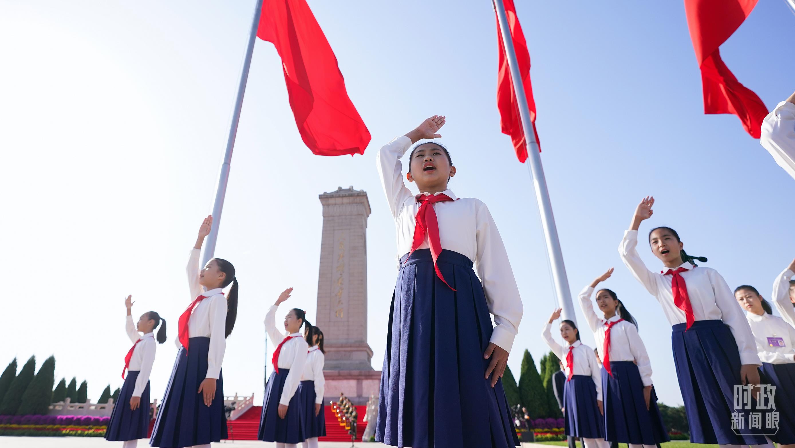 參加烈士紀(jì)念日向人民英雄敬獻花籃儀式的少年兒童。(總臺記者李晉拍攝)