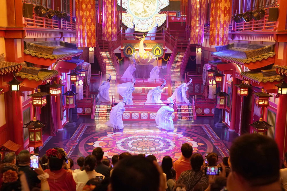 2024年5月19日,游客在西安長安十二時辰景區(qū)觀看表演《霓裳羽衣舞》?!伴L安十二時辰”主題街區(qū)將唐朝文化與現(xiàn)代旅游相結合,讓游客仿佛置身于千年前的長安城。近年來,西安積極推進產業(yè)升級和文旅融合,以中華優(yōu)秀傳統(tǒng)文化創(chuàng)新創(chuàng)造活力助推經濟社會高質量發(fā)展,如大唐不夜城一樣火爆“出圈”的文旅項目層出不窮。