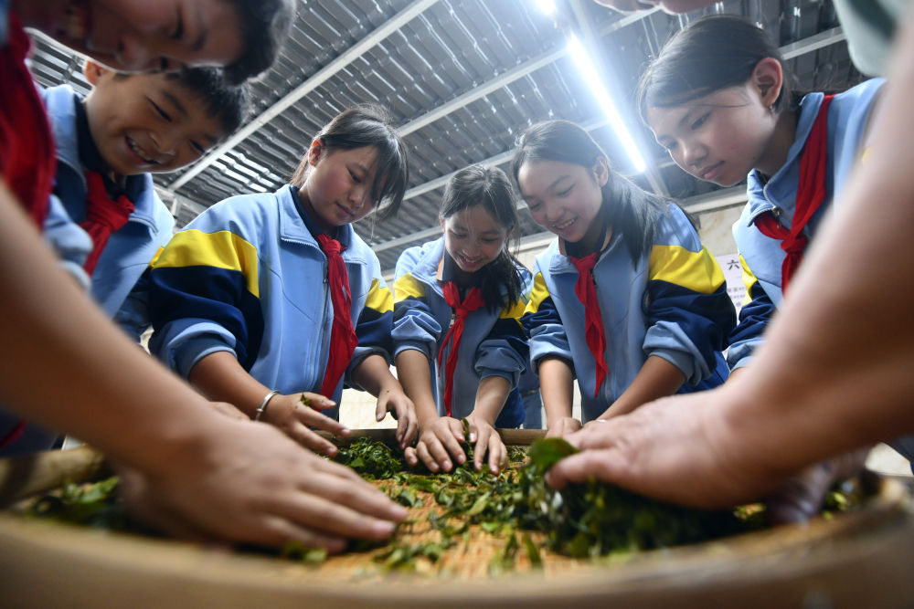 2024年12月3日,學生們在廣西梧州市蒼梧縣六堡鎮(zhèn)塘平小學學習制作六堡茶。廣西六堡茶已有1500多年的歷史,其制作工藝被列入第四批國家級非物質文化遺產代表性項目名錄。近年來,廣西圍繞打造千億元茶產業(yè)發(fā)展目標,深入實施綠色高效茶園建設、品牌提升和營銷體系建設、產業(yè)融合和茶文化提升等多項工程,形成了以六堡茶為引擎,早春茶等特色優(yōu)勢茶協(xié)同發(fā)展的產業(yè)格局,茶產業(yè)煥發(fā)勃勃生機。六堡茶正沿21世紀海上絲綢之路運達八方,香飄海內外。2024年,廣西六堡茶產量達到4.3萬噸,綜合產值超300億元。