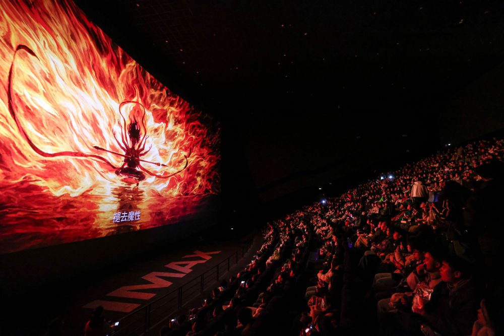 2025年2月25日,觀眾在貴陽越界影城IMAX影廳內觀看電影《哪吒之魔童鬧?!贰赢嬰娪啊赌倪钢[?!纷?月29日上映后票房一路高歌猛進,僅用8天便登頂中國影史票房榜,隨后成為全球單一市場票房冠軍、全球動畫電影票房冠軍。2025年以來,國家電影局等相繼啟動“跟著電影品美食”“跟著電影去旅游”“中國電影消費年”活動,充分發(fā)揮電影對提振消費的積極作用;各地文旅部門等通過發(fā)布觀影消費券、舉辦主題活動等形式推動影旅融合,發(fā)展票根經濟。