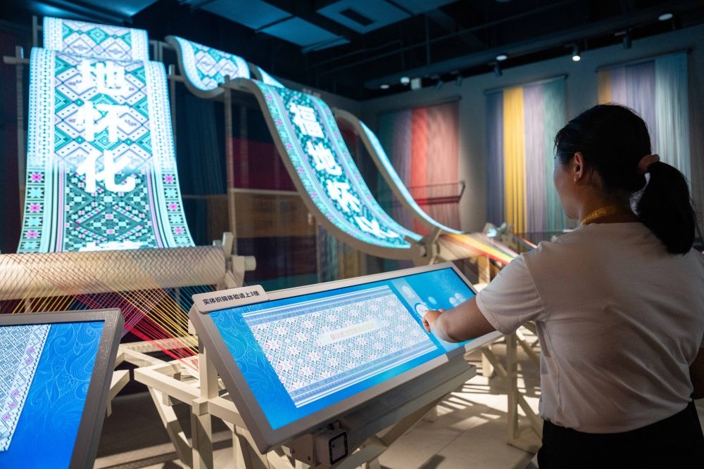 2025年9月16日,游客在湖南省懷化市五溪非遺園體驗數(shù)字化織錦。五溪非遺園于2025年5月正式開園,包含非遺廣場、數(shù)字體驗空間和研學工坊三大板塊,運用VR、AR、全息投影等技術打造42個沉浸式非遺體驗項目。目前,懷化以五溪非遺園為抓手,推出非遺主題研學項目、開發(fā)深度互動項目,構筑特色文化產業(yè)體系,吸引更多人了解、學習非遺,讓傳統(tǒng)技藝成為城市發(fā)展的文化動力。
