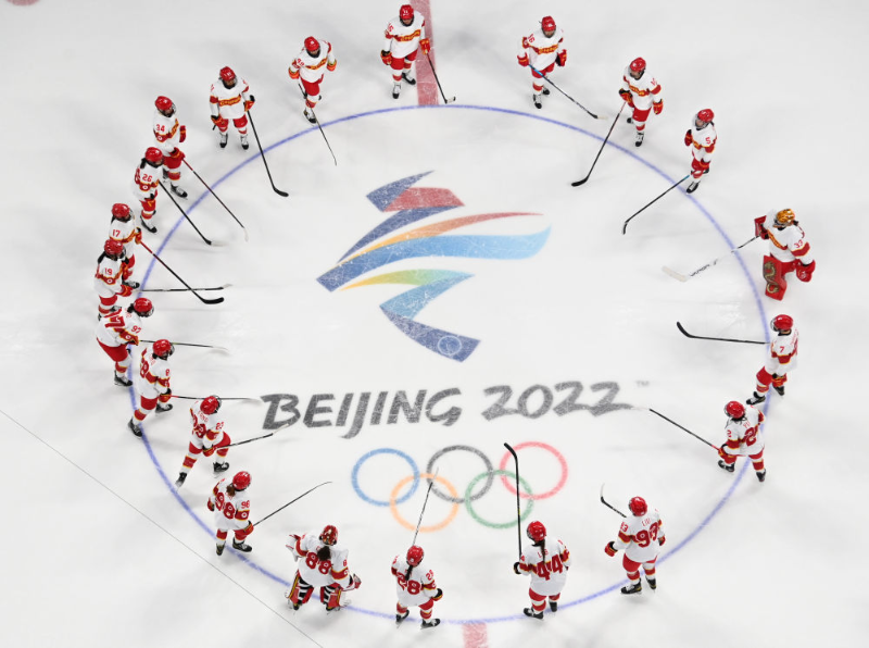 北京2022年冬奧會是迄今女性參賽比例最高、參與項(xiàng)目最多的一屆冬奧會。圖為中國國家女子冰球隊(duì)在賽場。