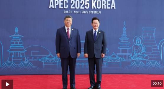 習(xí)近平主席抵達(dá)時,韓國總統(tǒng)李在明熱情迎接。兩國元首握手、合影,留下珍貴的“APEC瞬間”。隨后,兩位領(lǐng)導(dǎo)人微笑交談,共同步入會場。