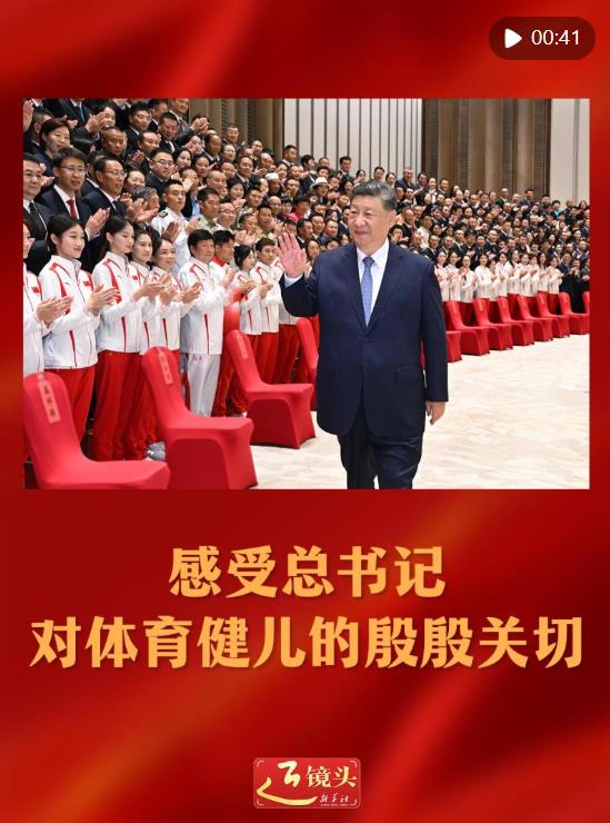 習(xí)近平總書記高度重視和關(guān)心體育事業(yè),黨的十八大以來多次寄語中國體育健兒。每次見到大家,總書記都會點贊運動員們的優(yōu)異成績和拼搏精神,勉勵大家奮力拼搏、再創(chuàng)佳績,為建設(shè)體育強(qiáng)國作出新貢獻(xiàn)。