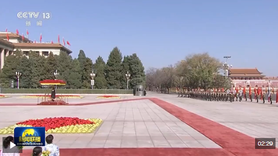 哇集拉隆功抵達(dá)時(shí),禮兵列隊(duì)致敬。習(xí)近平同哇集拉隆功登上檢閱臺(tái),軍樂團(tuán)奏中國(guó)國(guó)歌和泰國(guó)頌圣歌,天安門廣場(chǎng)鳴放禮炮21響。哇集拉隆功在習(xí)近平陪同下檢閱中國(guó)人民解放軍儀仗隊(duì),并觀看分列式。