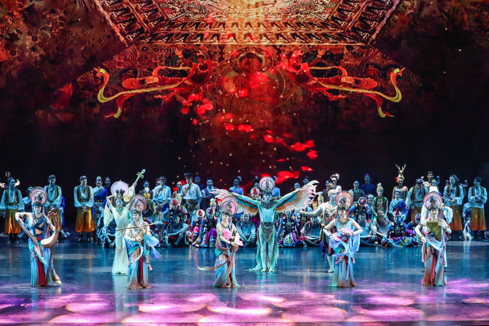 2025年9月20日,演員在敦煌大劇院表演新版《絲路花雨》。1979年,大型民族舞劇《絲路花雨》在中國(guó)西北誕生。編創(chuàng)者們從敦煌莫高窟的壁畫和彩塑中尋找靈感,將壁畫上凝固了千年的舞姿,轉(zhuǎn)化為動(dòng)態(tài)舞蹈語(yǔ)言。40多年來(lái),《絲路花雨》累計(jì)演出超4000場(chǎng),足跡遍布40多個(gè)國(guó)家和地區(qū),被譽(yù)為“中國(guó)舞劇的里程碑”和“活的敦煌壁畫、美的藝術(shù)享受”。此次新版歷經(jīng)兩年半創(chuàng)排,通過(guò)復(fù)原與創(chuàng)新對(duì)經(jīng)典藝術(shù)進(jìn)行當(dāng)代詮釋,彰顯了中華優(yōu)秀傳統(tǒng)文化的生命力。
