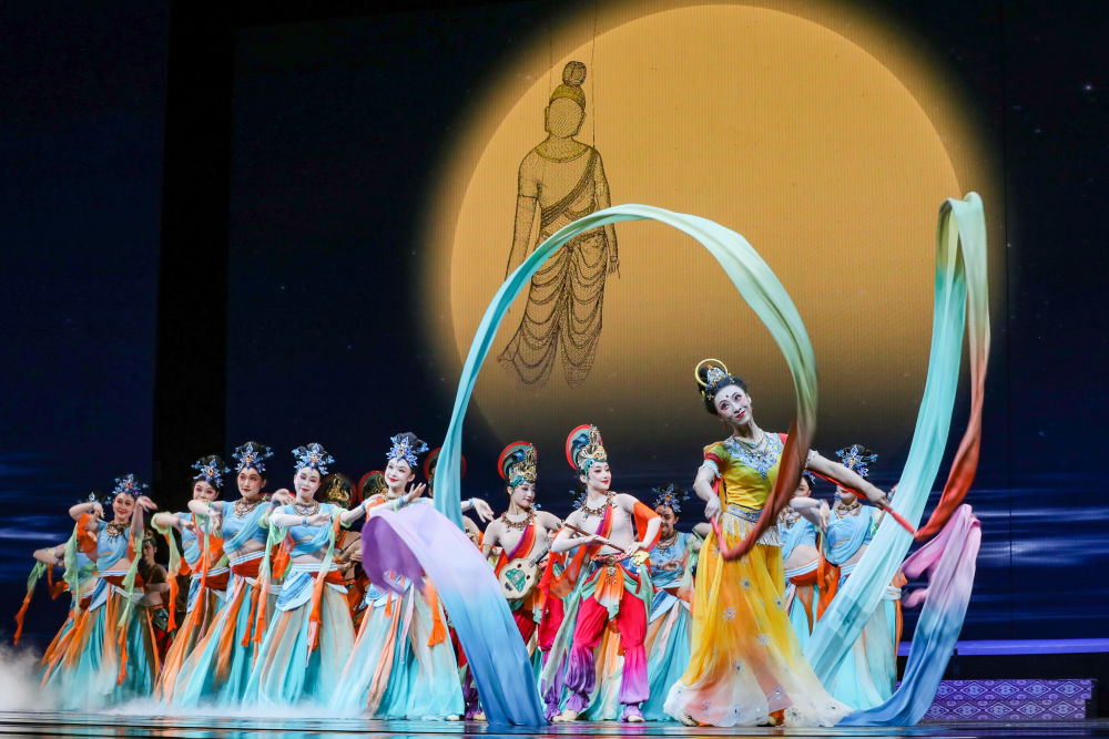 2025年9月22日,在敦煌舉辦的“相約敦煌”國(guó)際文化交流演出活動(dòng)上,甘肅省演藝集團(tuán)的演員展演《樂(lè)動(dòng)敦煌》選段?!稑?lè)動(dòng)敦煌》借助對(duì)莫高窟壁畫、藏經(jīng)洞古籍的解讀梳理,活化敦煌古樂(lè)器、古樂(lè)譜研發(fā)成果,通過(guò)全息投影等手段,結(jié)合專業(yè)演員的表演,將莫高窟壁畫中的樂(lè)舞盛景生動(dòng)再現(xiàn),讓觀眾沉浸式感悟傳承千年的敦煌樂(lè)舞文化魅力。