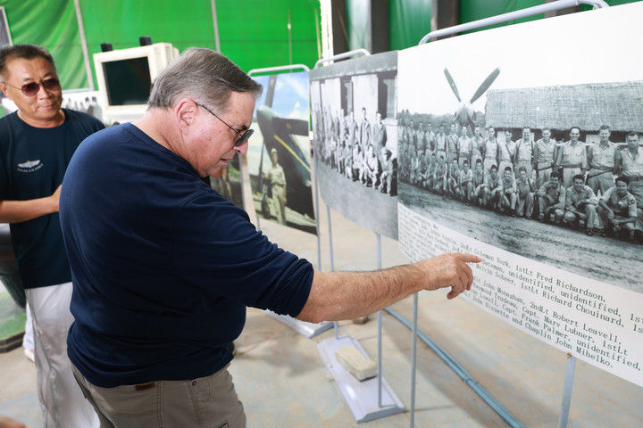 2025年7月16日,美中航空遺產(chǎn)基金會(huì)主席杰夫·格林在貴州黃平舊州機(jī)場(chǎng)查看飛虎隊(duì)資料照片??箲?zhàn)時(shí)期,舊州機(jī)場(chǎng)主要承擔(dān)飛機(jī)加油、彈藥補(bǔ)充和維修任務(wù)。常駐于此的美國(guó)飛虎隊(duì)?wèi)?zhàn)機(jī)頻頻在該機(jī)場(chǎng)起降,參加了湘西會(huì)戰(zhàn)、衡陽(yáng)保衛(wèi)戰(zhàn)等著名戰(zhàn)役。該機(jī)場(chǎng)見證了中美聯(lián)合反抗法西斯的光輝歷史,還為確保“駝峰航線”的順利暢通發(fā)揮了舉足輕重的作用。