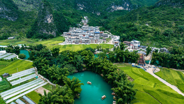 游客乘船游玩貴州省羅甸縣沫陽(yáng)鎮(zhèn)大小井景區(qū)(2025年8月12日攝,無人機(jī)照片)。通過不斷升級(jí)基礎(chǔ)設(shè)施、優(yōu)化服務(wù)體系,羅甸縣以旅居康養(yǎng)為特色,將豐富的山水資源轉(zhuǎn)化為旅游優(yōu)勢(shì),讓“享玩水 趣羅甸”成為夏日品牌,推動(dòng)全域旅游高質(zhì)量發(fā)展。