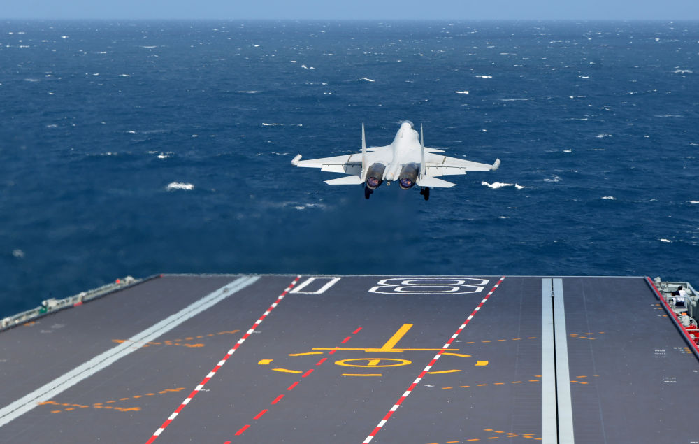海軍福建艦開展入列后首次海上實兵訓(xùn)練期間,殲-15DT艦載機(jī)彈射起飛(資料照片)。新華社發(fā)(高澤明 攝)