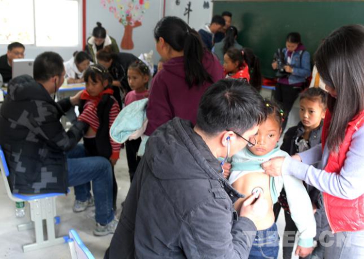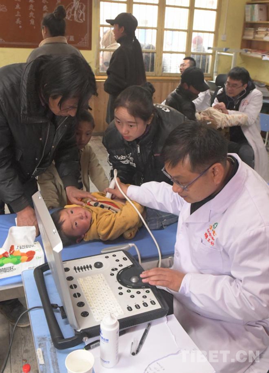 圖為解放軍總醫(yī)院醫(yī)療隊在巴塘縣竹巴龍小學篩查先心病患兒。攝影:唐召明