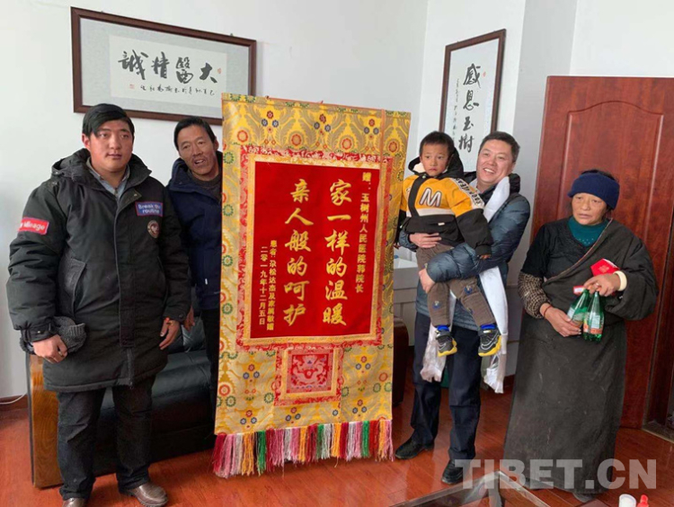 中國西藏網(wǎng)訊 12月20日,青海省玉樹藏族自治州人民醫(yī)院院長郭勇的辦公室里來了幾位特殊的客人——三歲的小尕松和他的親人。他們?yōu)楣滤蜕弦幻驽\旗,上面寫著“家一樣的溫暖,親人般的呵護”。