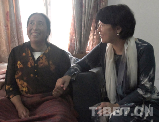 這是幫助強巴卓嘎聯(lián)系治病的北京安貞醫(yī)院小兒心臟病專家顧虹(右)看望離京返藏前的強巴卓嘎(左)時,與她相互交流,回憶治病過程。(唐召明2019年9月30日攝)
