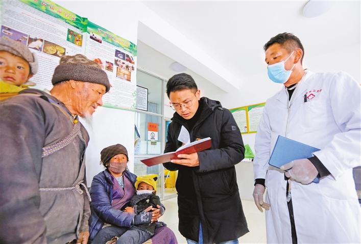 當(dāng)選十三屆全國(guó)人大代表以來,西藏山南市瓊結(jié)縣拉玉鄉(xiāng)黨委副書記江村,積極為農(nóng)牧區(qū)醫(yī)療衛(wèi)生事業(yè)發(fā)展出謀劃策。在基層調(diào)研中,他最關(guān)心的是醫(yī)療衛(wèi)生室硬件設(shè)施和醫(yī)護(hù)人員結(jié)構(gòu)等情況。在今年全國(guó)兩會(huì)上,江村將圍繞“加大對(duì)西藏基層醫(yī)療衛(wèi)生方面的支持力度”等提出建議。圖為江村(右二)深入拉玉鄉(xiāng)堆巴村衛(wèi)生室調(diào)研。記者 洛桑 次旺 攝