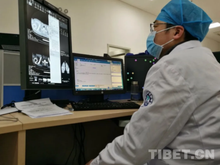 圖為影像科醫(yī)生正在使用新冠肺炎影像輔助診斷平臺(tái)