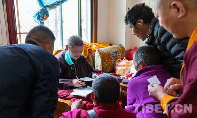 圖為索朗江白正在誦讀《四部醫(yī)典》 攝影:趙耀
