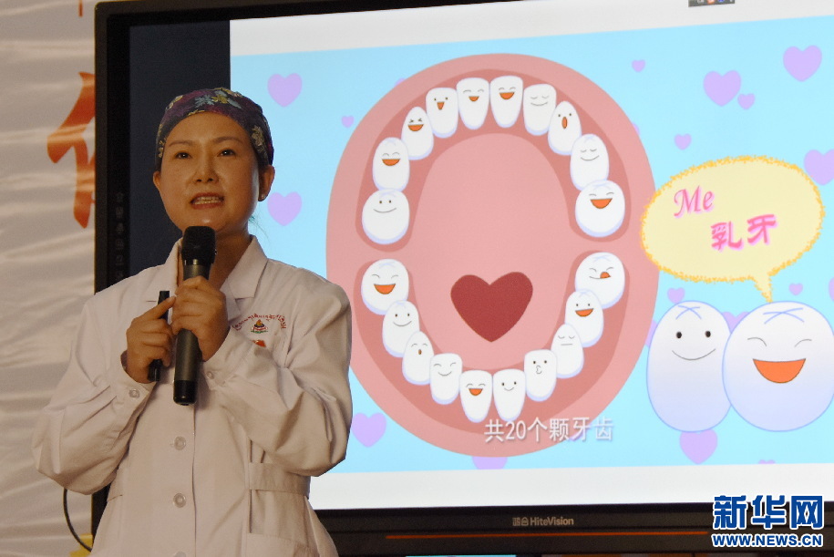 這是18日在西藏山南市第三小學(xué)禮堂的一個(gè)場(chǎng)景。在全國愛牙日來臨之際,湖南省第九批援藏工作隊(duì)組織的愛牙公益活動(dòng)于當(dāng)日舉行。中南大學(xué)湘雅口腔醫(yī)(學(xué))院援藏醫(yī)生李毅萍為在場(chǎng)的300多名小學(xué)生和家長(zhǎng),做了一場(chǎng)生動(dòng)活潑的口腔衛(wèi)生知識(shí)科普。
