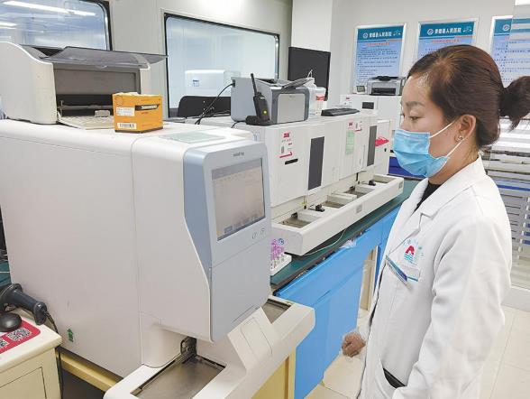 貴德縣人民醫(yī)院檢驗(yàn)科醫(yī)師做檢驗(yàn)。 通訊員 何君 攝
