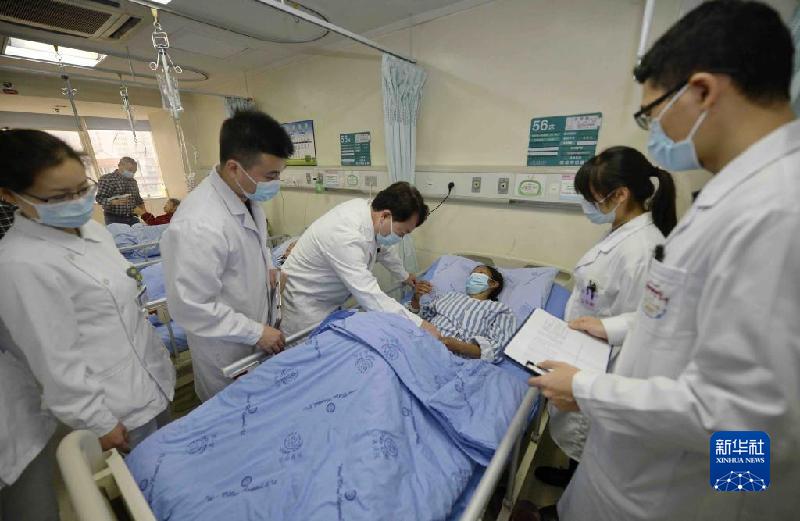 12月3日,在四川大學(xué)華西醫(yī)院,王文濤(中)在病房內(nèi)查看包蟲病患者病情。新華社記者 劉坤 攝