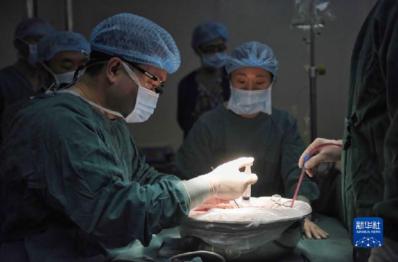 2020年1月16日,在甘孜州人民醫(yī)院,王文濤(左)進行“體外肝切除聯(lián)合自體肝移植手術(shù)”。新華社記者 劉坤 攝