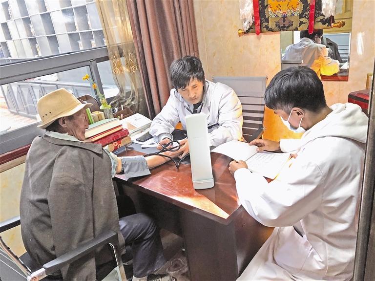 圖為林周縣朗邁社工協(xié)會(huì)的醫(yī)生為老人提供康療服務(wù)。記者 央金 攝