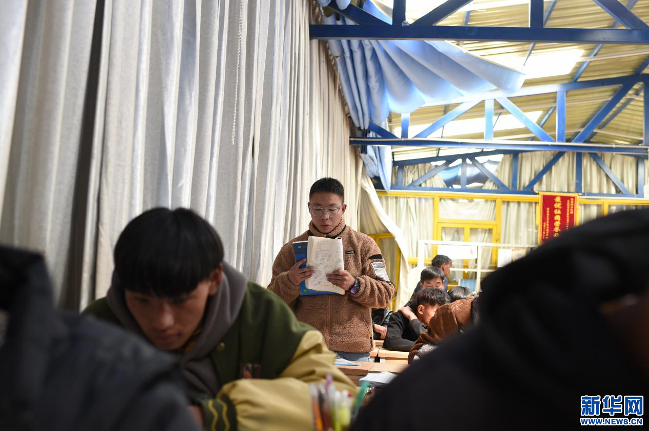 在西藏阿里岡底斯藏醫(yī)教學(xué)院,一名學(xué)生在朗讀課文(4月20日攝)。新華網(wǎng) 旦增努布攝
