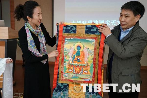 圖為北京藏醫(yī)院和中國(guó)科學(xué)院國(guó)家天文臺(tái)雙方互贈(zèng)文化制品、圖書。攝影:李偉 魯星杞