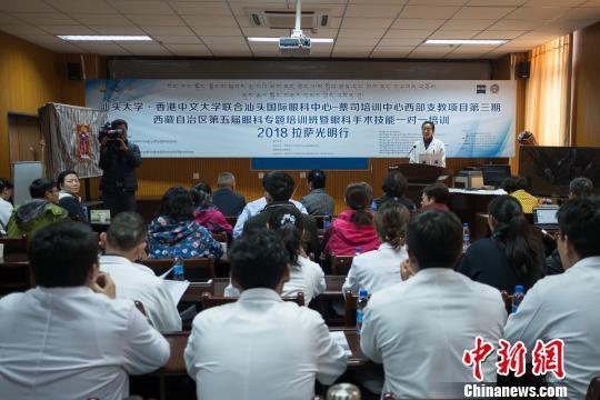圖為由汕頭大學(xué)香港中文大學(xué)聯(lián)合汕頭國(guó)際眼科中心舉辦的西藏自治區(qū)第五屆眼科專題培訓(xùn)班暨2018“拉薩光明行”項(xiàng)目在西藏自治區(qū)藏醫(yī)院?jiǎn)?dòng)。 何蓬磊 攝
