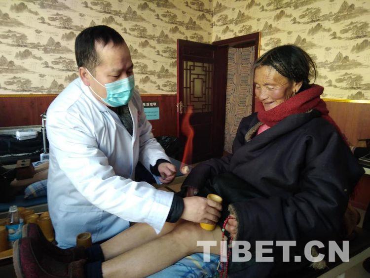 圖為援藏醫(yī)生為病人診治