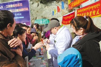 近日,西藏自治區(qū)總工會在拉林鐵路達(dá)嘎拉隧道施工現(xiàn)場,開展了以“學(xué)習(xí)貫徹十九大·工會服務(wù)在基層”為主題的服務(wù)職工系列活動。活動現(xiàn)場,西藏自治區(qū)司法廳法律援助中心律師以“法律講堂”的形式與職工互動;西藏自治區(qū)人民醫(yī)院、西藏自治區(qū)藏醫(yī)院醫(yī)生為職工義診并發(fā)放了藥品;遠(yuǎn)大農(nóng)民工藝術(shù)團(tuán)、朗縣民間藝術(shù)團(tuán)表演了文藝節(jié)目。