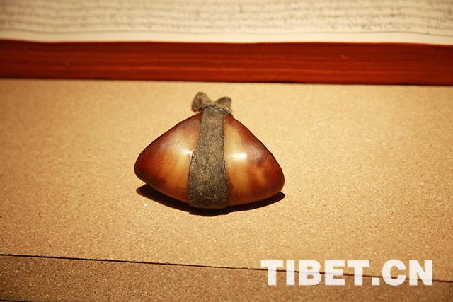 圖為用牦牛蹄掏空制作而成的藏藥袋