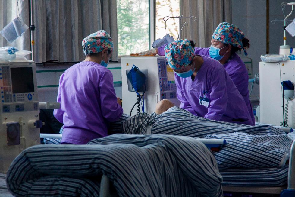 圖為血液透析中心的護(hù)士們在為病人護(hù)理。拉薩市人民醫(yī)院血液透析中心成立于2017年3月,采用最先進(jìn)的德國設(shè)備,現(xiàn)已陸續(xù)開展了血液透析、血液灌流、血液透析濾過等技術(shù),月均透析達(dá)百余人次,目前已完成透析3233人次。