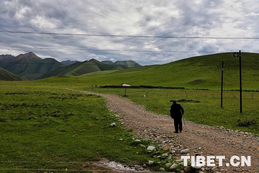 這位老人叫丹巴加,今年59歲,是這里唯一的一戶牧民。時(shí)逢放牧季節(jié),家人們趕著牛群、羊群轉(zhuǎn)場(chǎng)到另一個(gè)草場(chǎng)放牧,家中只剩下他一個(gè)人,從他家到衛(wèi)生院開車要30分鐘。老人見到我們的第一句話就是:“扎西德勒,感謝你們的到來”。