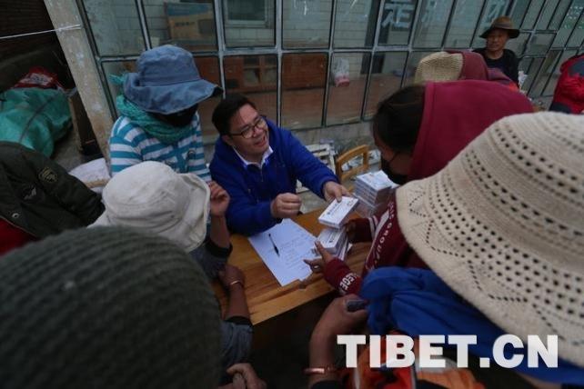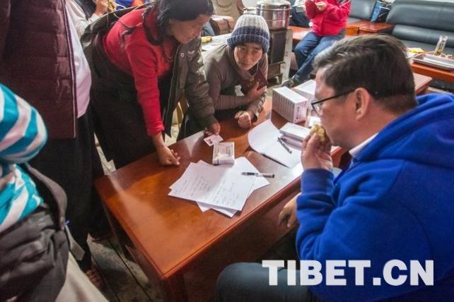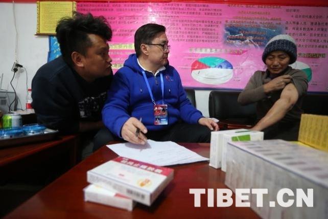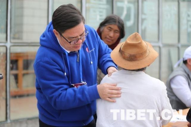溫建民為一位藏族群眾檢查身體。