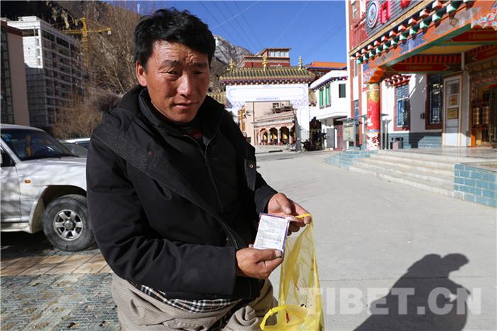 圖為多吉向記者展示剛買(mǎi)的藏藥。